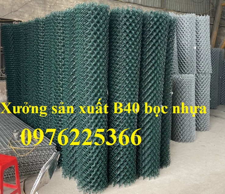 Lưới B40 bọc nhựa được sản xuất từ các sợi dây mạ kẽm nhúng nóng sau được bọc bằng nhựa PVC dày. Được thành mắt lưới xoắn chao: 20mmx20mm, 30mmx30mm, 50mmx50mm, 60mmx60mm, 70mmx70mm.